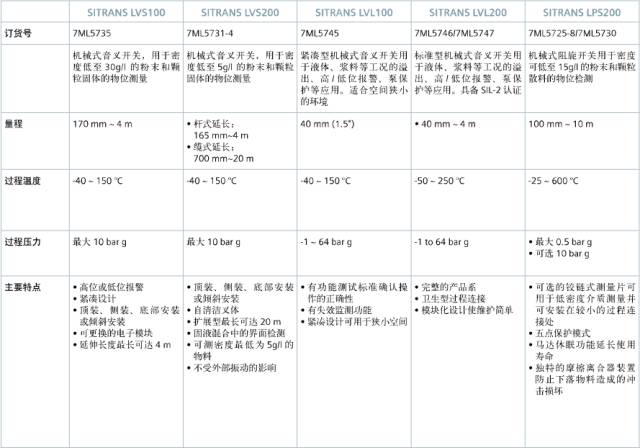 物位开关 西门子物位开关可以实现物料的高位、低位报警,包括低密度介质,如干粉、颗粒、粮食及潮湿粘结介质等。这些开关不受蒸汽、气体、气泡或泡沫等物料的影响,可以作为高位、低位报警,界面测量或泵干抽报警的备份。西门子物位开关为您提供解决方案—让您对物位测量充满信心。