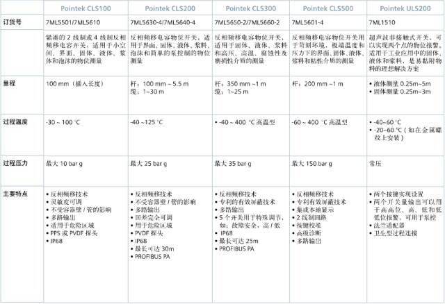 西门子物位开关性能优异,且可以降低维护、停机故障和设备更换的成本。他们坚固的设计在恶劣和腐蚀的环境中可保证较长的使用寿命并且成本很低。他们设置简单,并可轻松连接到任何报警或控制系统中。 西门子阻旋开关和音差开关产品特别适用于低密度介质的测量。标准的铸铝表壳和不锈钢过程连接有效防止机械磨损。 西门子专利的反相频移电容技术确保了测量的准确性,可靠性和可重复性,即使在粉尘、波动、挂料和挥发性气体氛围中,也能保证测量。微小的物位变化会产生很大的频率变化,因此西门子Pointek CLS系列产品提供最优秀的解决方案,并一如既往的超越传统的设备。