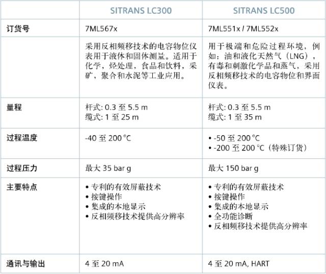 广泛应用于各种工业,西门子采用反相频移技术的连续量测量电容物位仪表适用于液体、固体和界面的测量。西门子射频电容物位仪表使用有效屏蔽技术确保在物料表面取得真实、准确的测量。SITRANS LC300和SITRANS LC500特别适用于化工行业、碳氢化合物处理工艺和食品饮料行业。